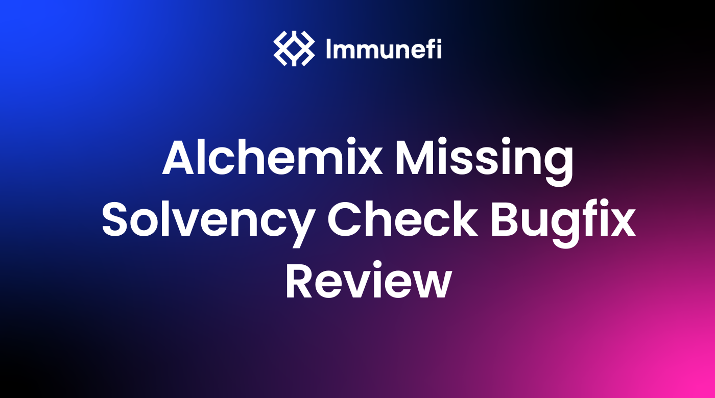 On September 28, 2023, the security researcher @KoiushSec submitted a critical vulnerability to Alchemix via Immunefi, which consisted of missing solvency checks at liquidation. At the time of the submission, the vulnerability would have allowed an attacker with significant upfront capital to create over 7k of unbacked alETH in 2 hours (equivalent to $11,662,140 USD), if it had gone unnoticed.