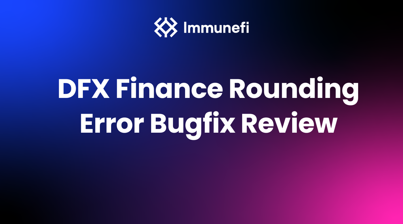 On April 28, 2023, a whitehat with the pseudonym perseverance submitted a critical vulnerability to DFX Finance via Immunefi, which consisted of a rounding error with the EURS token due to the non-standard decimal value of two. At the time of the submission, $237,143 was in the vulnerable pool and at risk of being stolen by a malicious hacker.