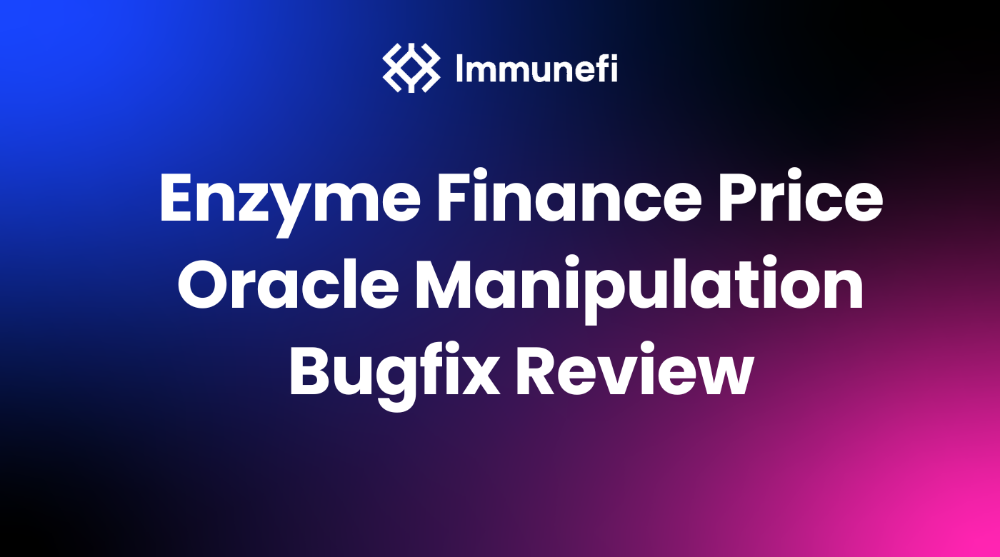 Enzyme Finance Price Oracle Manipulation Bugfix Review