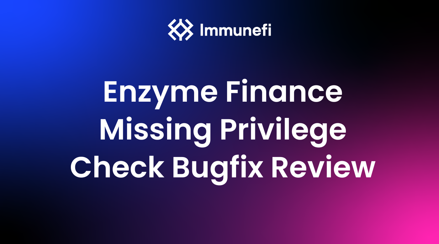 On Mar 28, 2023, whitehat rootrescue submitted a critical bug in Enzyme Finance via Immunefi, which the Enzyme team quickly confirmed and fixed. This critical bug could have led to the draining of Enzyme’s Vault which funds paymasters and enables Enzyme’s contracts to utilize the Gas Station Network.