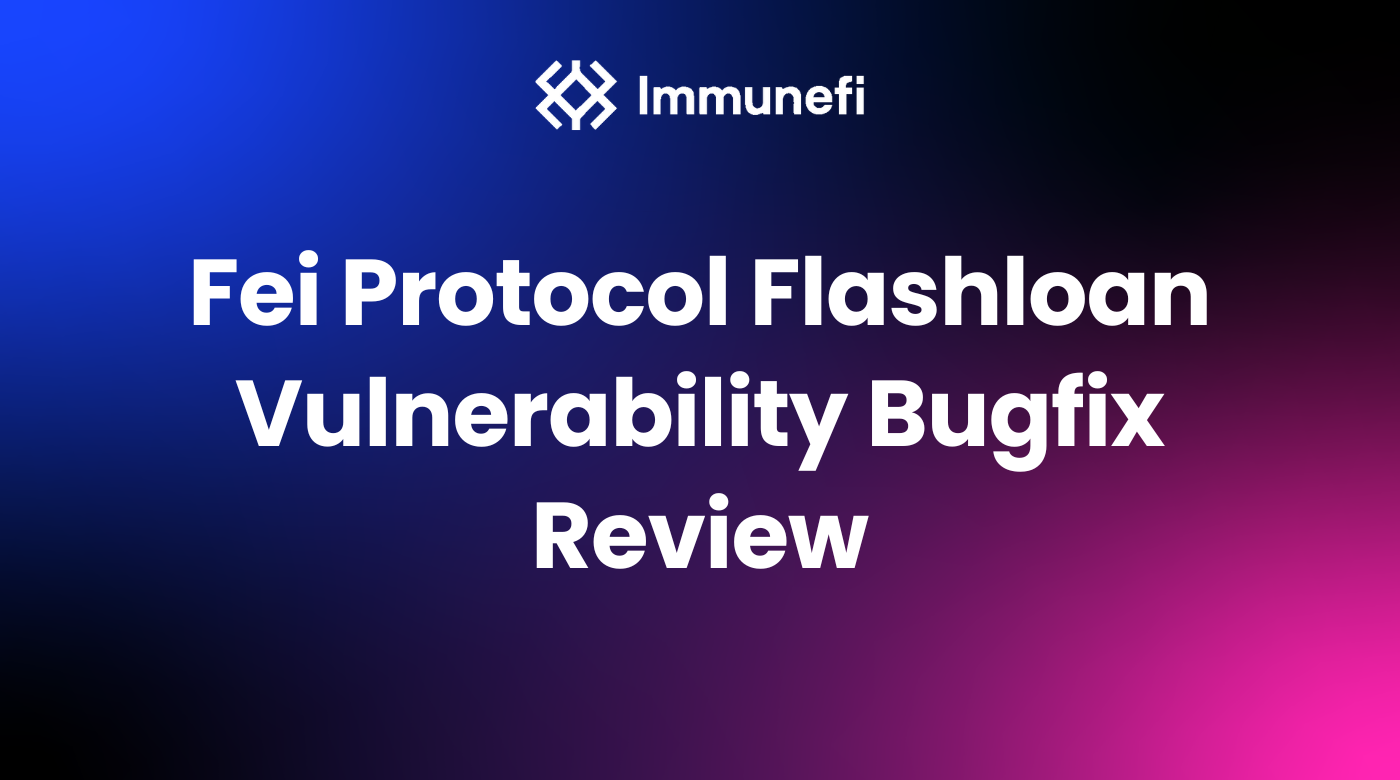 Whitehat Alexander Schlindwein, known for receiving the largest ever bug bounty payout after finding a critical bug in ArmorFi, discovered a critical vulnerability in Fei Protocol. Concurrently and independently, Fei Protocol’s expert security team, led by Joey Santoro, also discovered this bug and immediately paused the contract. If this vulnerability had been exploited, it could have drained the protocol of 60,000 ETH via a flash loan attack (limited by the ~1m in ETH available across the ecosystem for flash loans). Alexander Schlindwein reported this bug to Immunefi on May 2. The vulnerability was not exploited. No funds were lost.