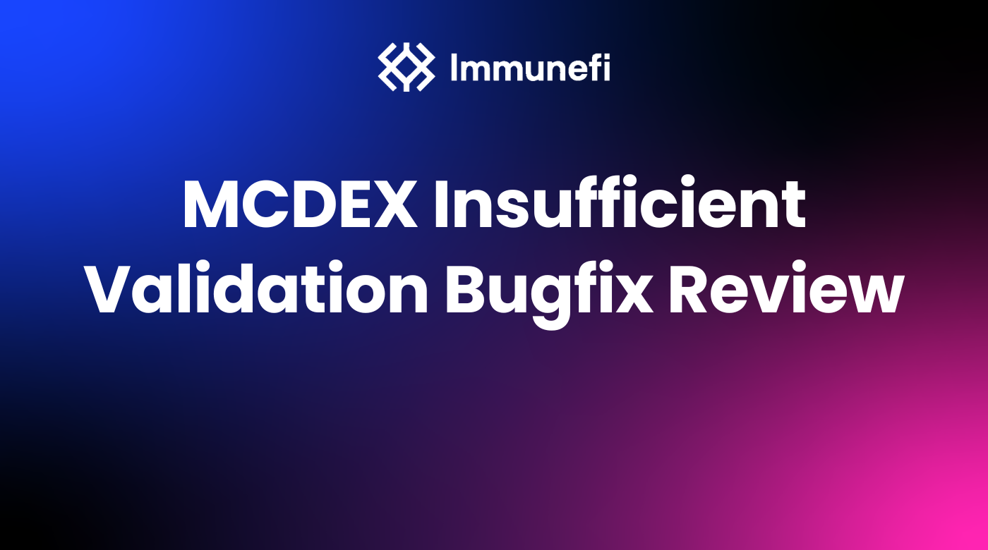 We’d like to thank the MCDEX team for their rapid and effective response to the bug report. MCDEX is paying out a bounty of $50,000 to the whitehat. To report additional vulnerabilities, please see MCDEX’s bug bounty program with Immunefi.