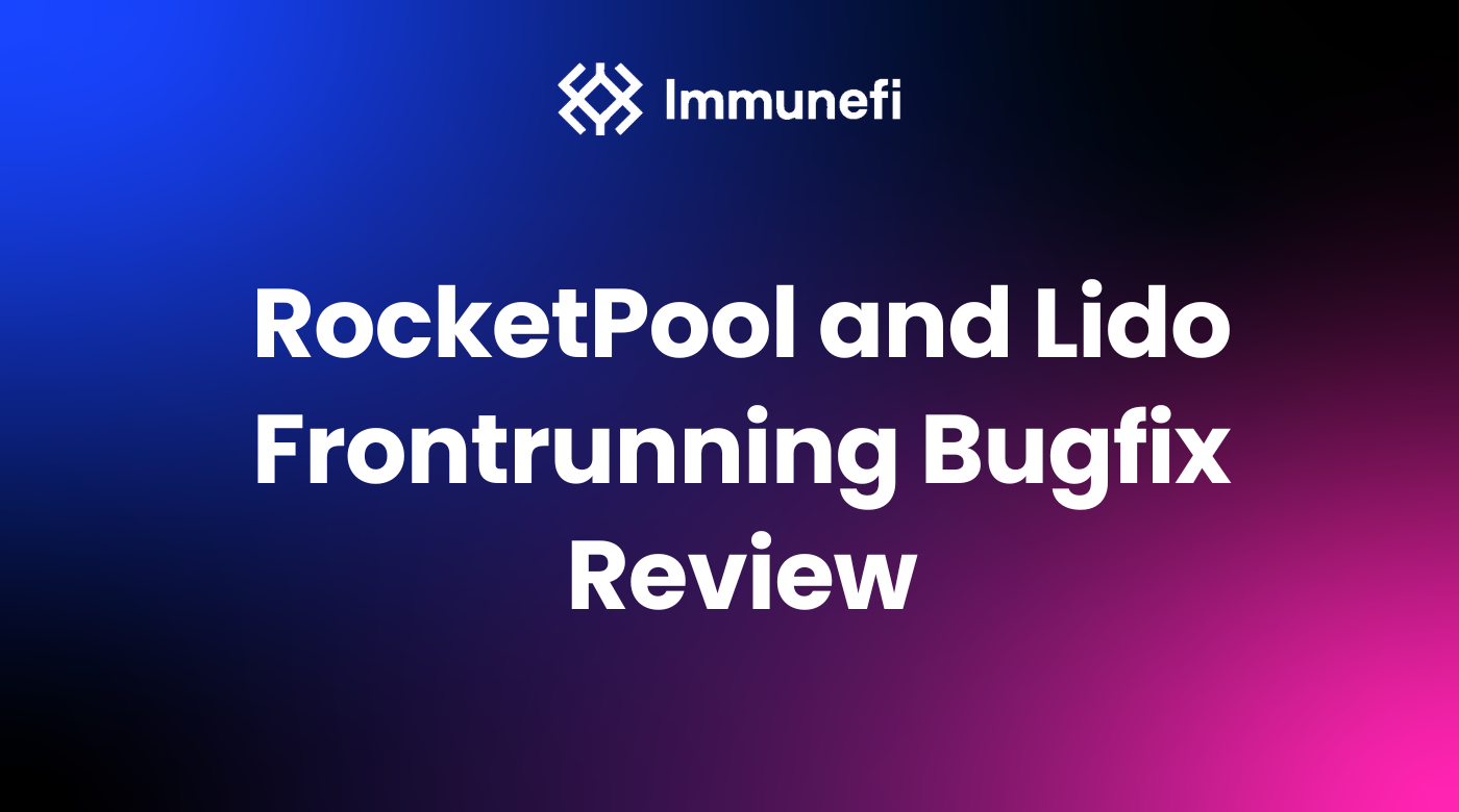 To report additional vulnerabilities, please see RocketPool and Lido’s bug bounty programs with Immunefi. If you’re interested in protecting your project with a bug bounty, visit the Immunefi services page and fill out the form.