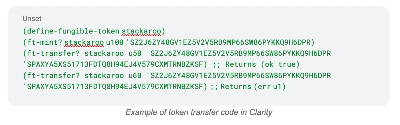 Central to the Stacks ecosystem is the smart-contract programming language, https://docs.stacks.co/clarity/overview Clarity, which uses a LISP-like syntax. Unlike compiled languages, Clarity relies on interpretation for execution, adding a layer of security to smart contracts.