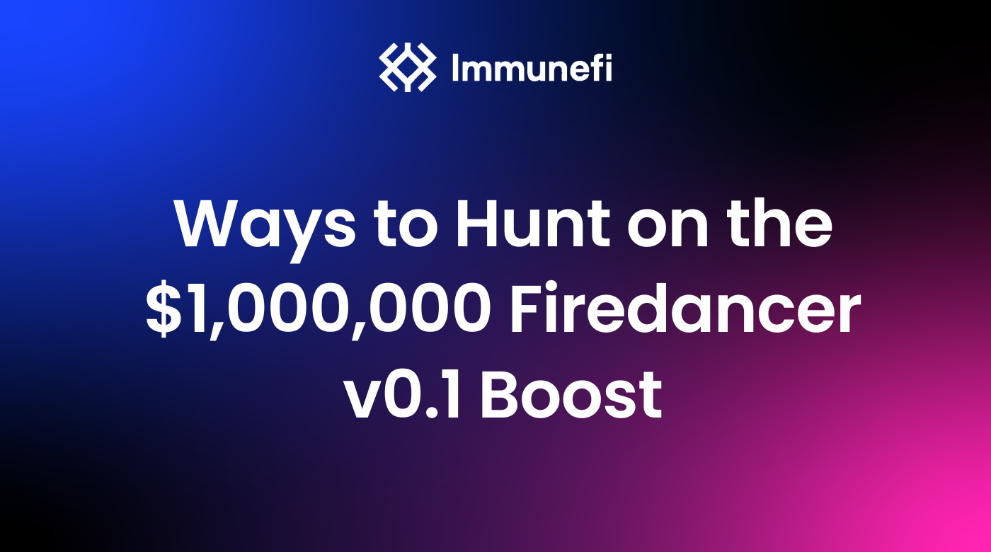 Looking to earn big while doing good? The Firedancer v0.1 Boost on Immunefi is your opportunity to help secure a new validator client for the Solana blockchain, and earn up to $1,000,000 in the process.