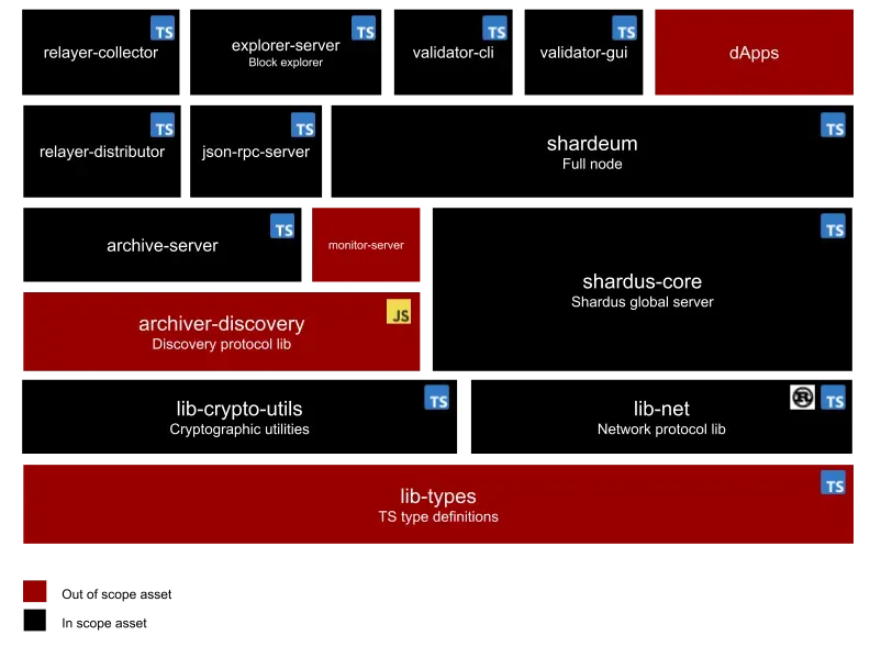 - lib-types. (TypeScript 1229 SLOC). All Shardeum subprojects are written in JavaScript with types also known as TypeScript. In order to keep the code consistent and easy to maintain, all types have been put into this js library. Even though it is not directly included in the scope, rest assured that a bug found in the data types can break any Shardeum project.