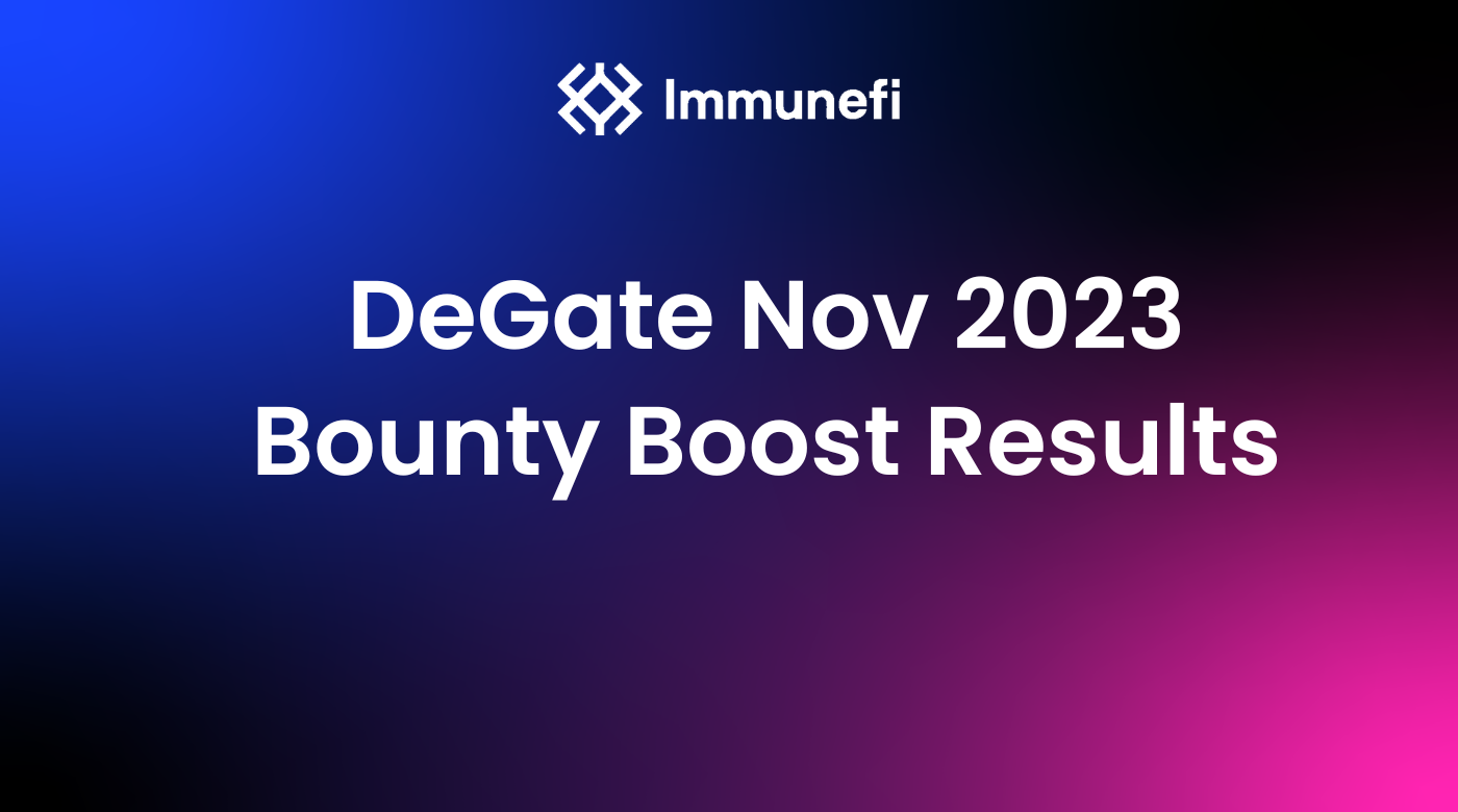In November 2023, we launched the first-ever Bounty Boost on Immunefi with DeGate.