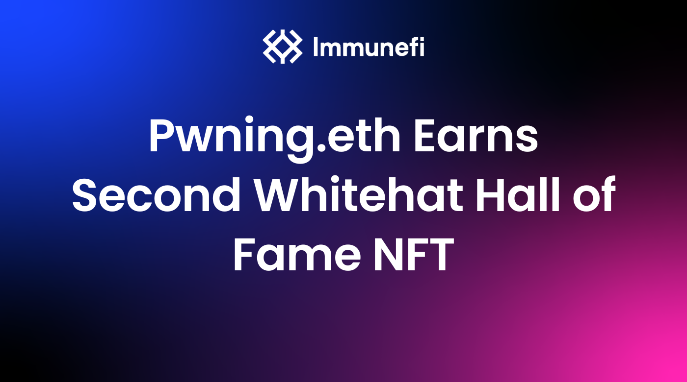 Pwning.eth Earns Second Whitehat Hall of Fame NFT