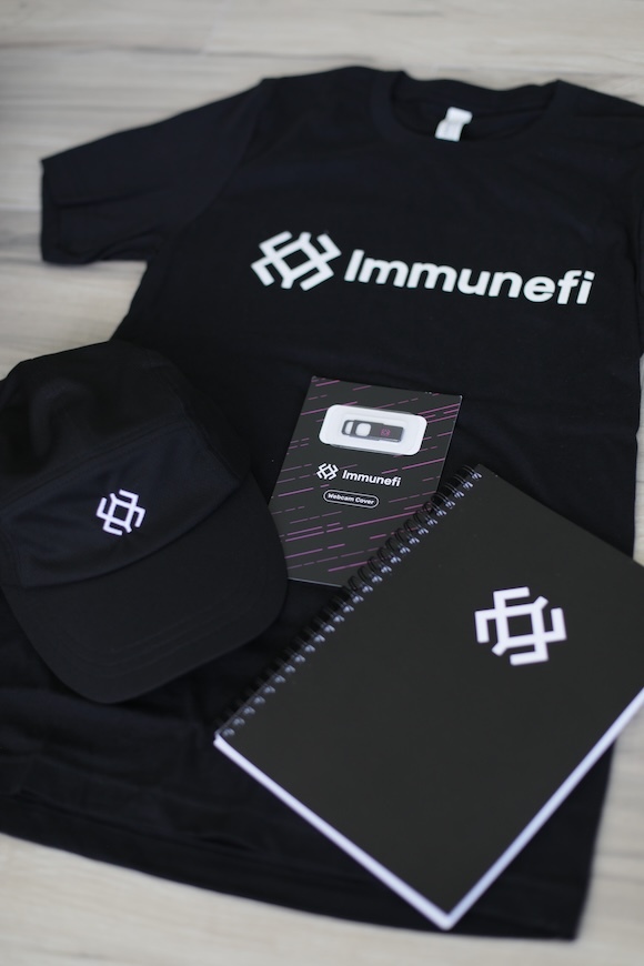 Official Immunefi Swag Pack. A full matte black hacker kit for stealthily attending your next event or convention. And more importantly, wear it to the afterparty...